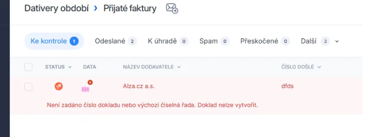 Tato chyba se může objevit také v případě, že došlo ke změně například v číselné řadě v systému Pohoda a doklad je následně exportován s původně zvoleným nastavením.