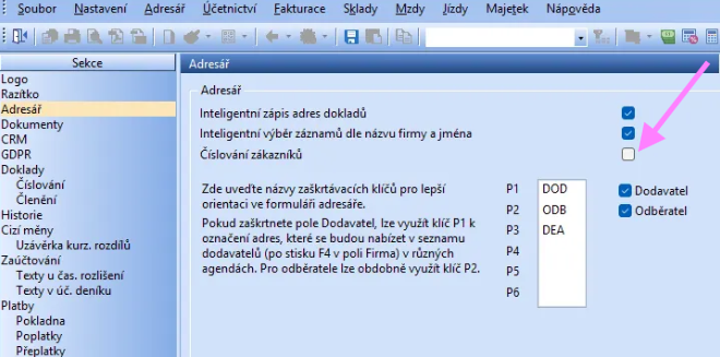 - vypnout funkci v nastavení - Globální nastavení - Adresář - Číslování zákazníků,