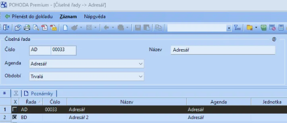 5. Funkce dokladová řada v adresáři