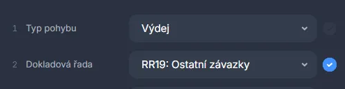 Příklad: pole Pokladna/Závazek je ve schématu skryté. Ostatní závazek se vrátí s chybovou hláškou, protože výchozí hodnota je Pokladna, což způsobí nevalidní kombinaci a doklad nelze zpracovat. Řešením je tedy zobrazit ve schématu Pole Pokladna/Závazek a zvolit správnou možnost.
