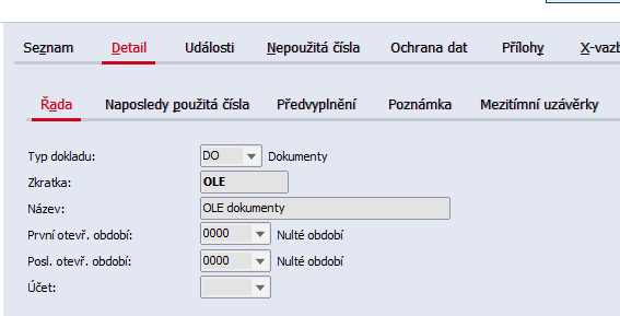 Pro Řadu dokumentu vyberte jakoukoliv řadu s Typem dokladu ‘Dokumenty’.