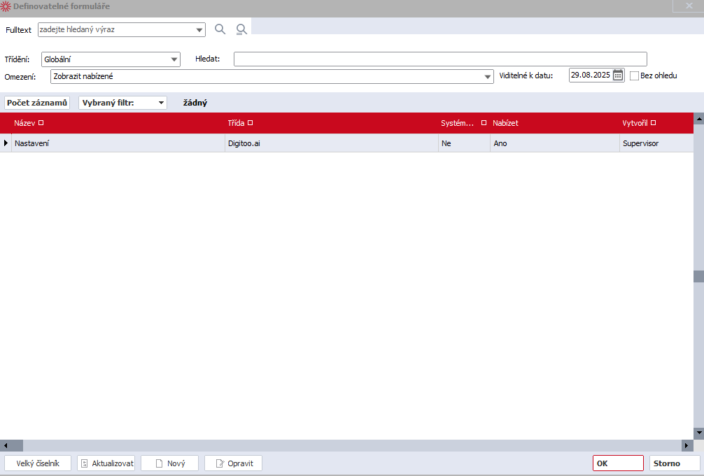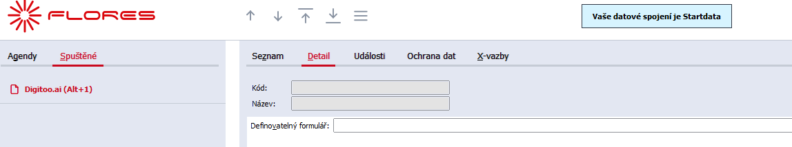 Poznámka: Pokud se definovatelný formulář nezobrazil po restartu Flores, tak doporučujeme restart počítače/serveru.