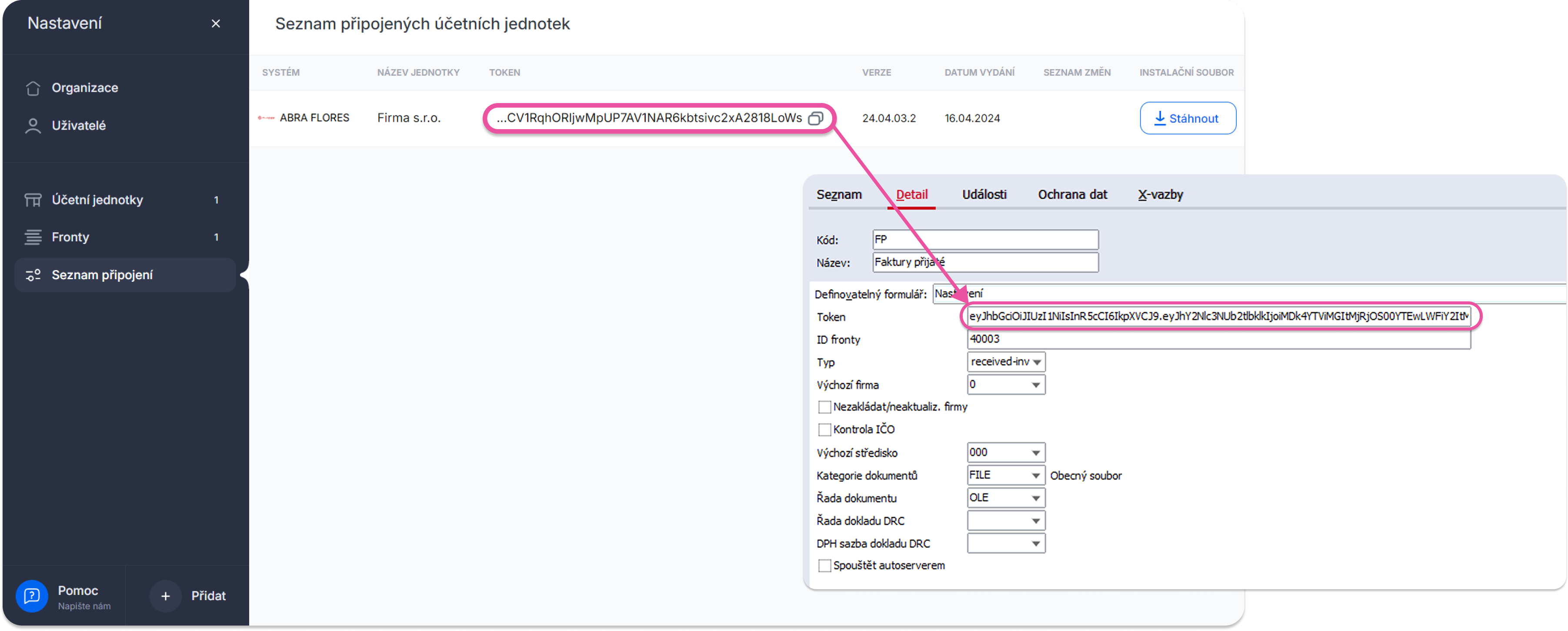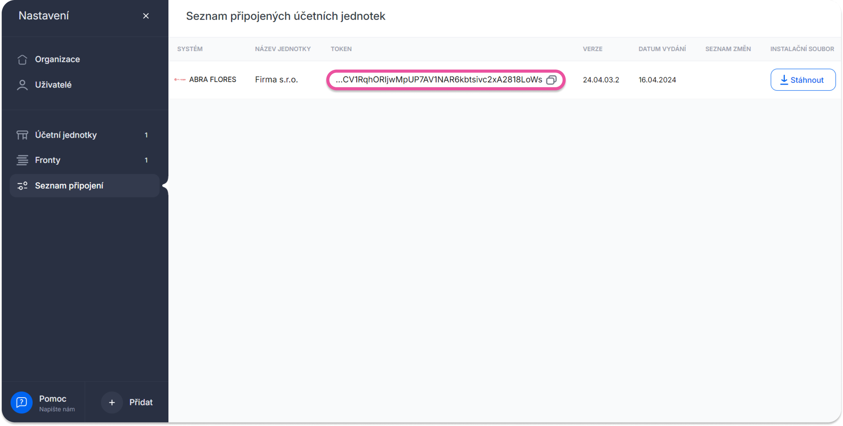 V poslední kroku si pak zkopírujte token, který budete potřebovat pro propojení s účetním systémem.