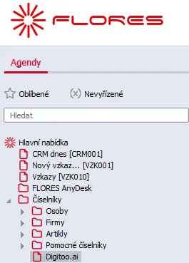 Následně se vám objeví v seznamu agenda Digitoo.ai.