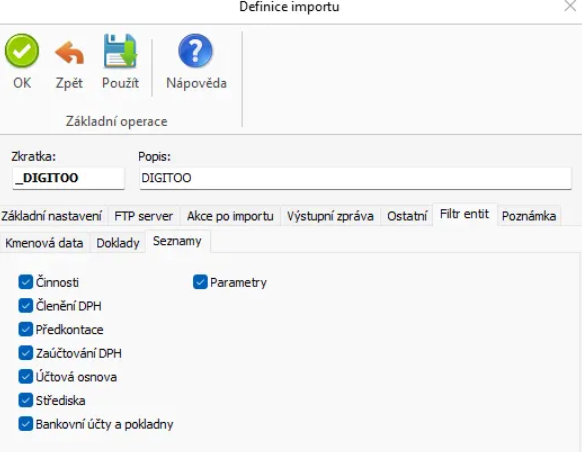 - V sekci Filtr entit - Doklady zaškrtnout vše.