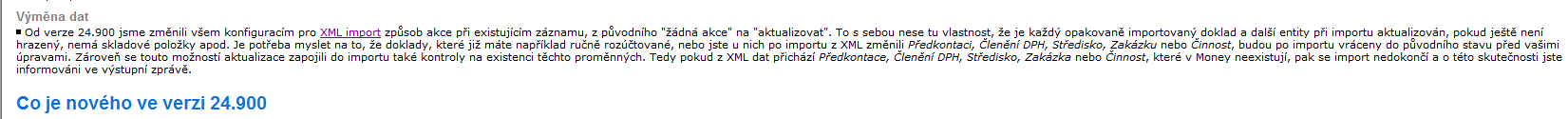 Money S3 od verze 24.900 změnilo výchozí nastavení pro kontrolu duplicit v konfiguraci zpracování a s ním i možnost přepsání dokladů místo založení nového, více ve screenu níže. Připravili jsme proto úpravu nastavení, aby se tomuto chování zabránilo.