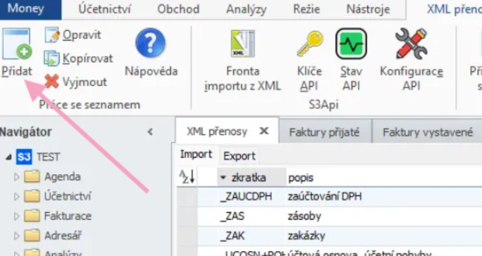 - Nastavení pro XML přenosy naleznete v Money - Možnosti a nastavení - XML přenosy.
