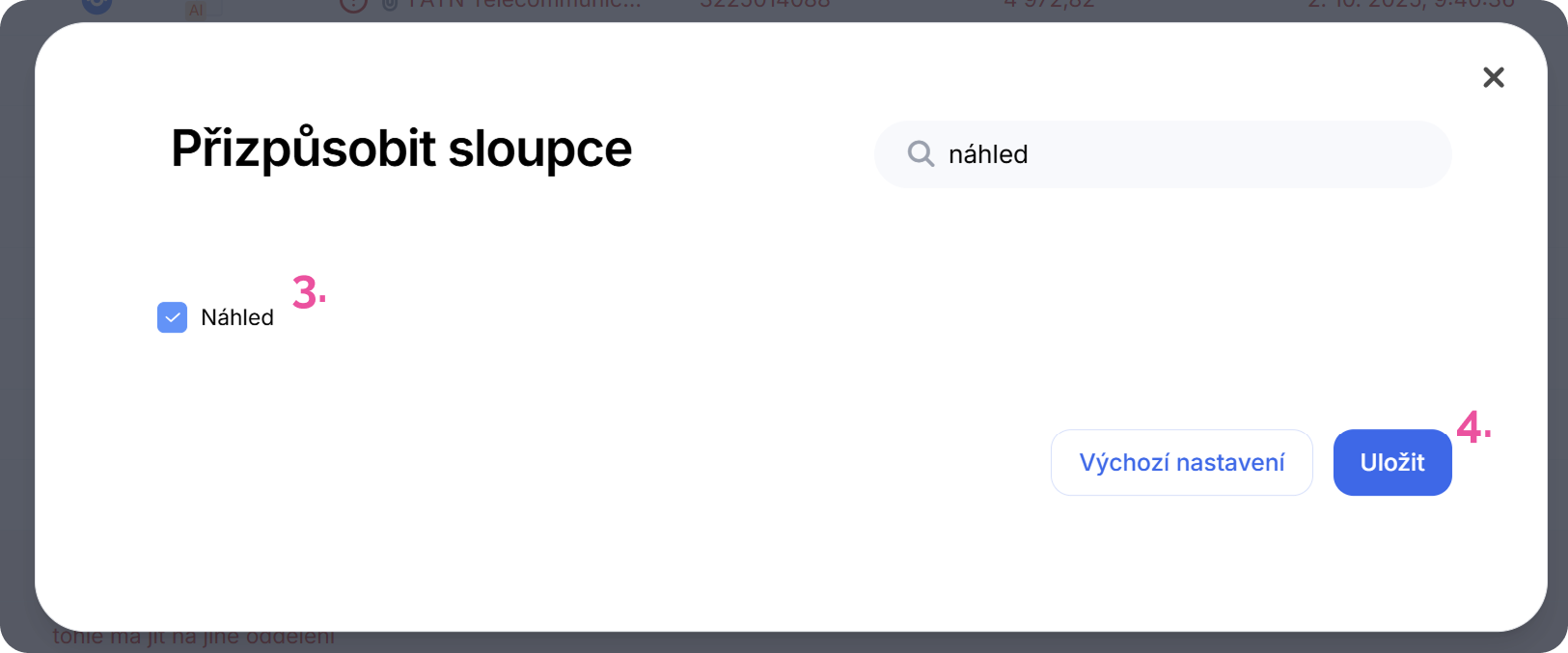 Zobrazí se vám seznam možností pro přizpůsobení sloupců mezi kterými můžete i vyhledávat. Stačí si zaškrtnout sloupce, které chcete na přehledu mít a nastavení uložit.