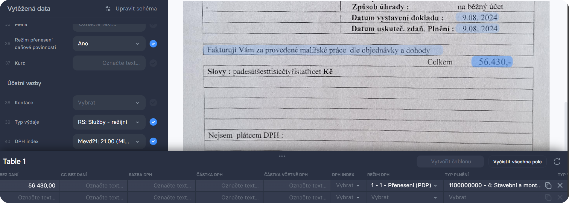 V Digitoo.ai aplikaci je potřeba na detailu dokladu mít vyplněno správně: