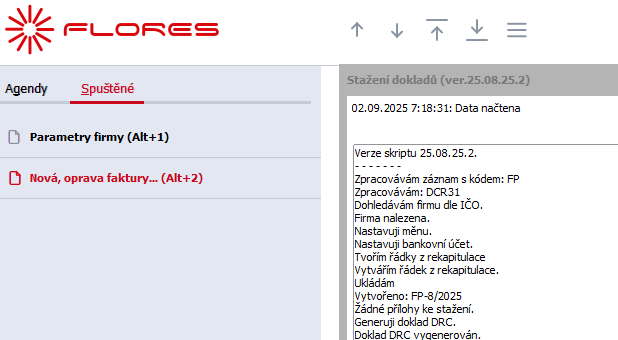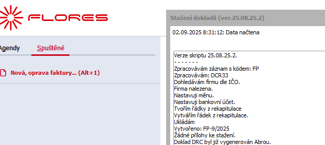Pokud je v Parametrech firmy nastaveno “Automaticky”, tak se doklad DRC vygeneruje a v logu je tato hláška: “Doklad DRC byl již vygenerován Abrou.”