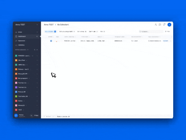 Aplikace každému uživateli nabízí možnost si seřadit jednotlivé firmy, které vidí a mají přiřazené dle vlastního pořadí. Standardně je pořadí firem nastavené abecedně, a pokud najedete na název firmy, tak se vám zobrazí na začátku řádku ikona pro přesun a potažením pak zvolíte pořadí, kam ji chcete přesunout.